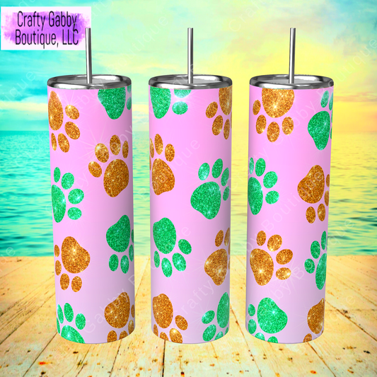 "Glitter" Paw Print 20oz Skinny Tumbler