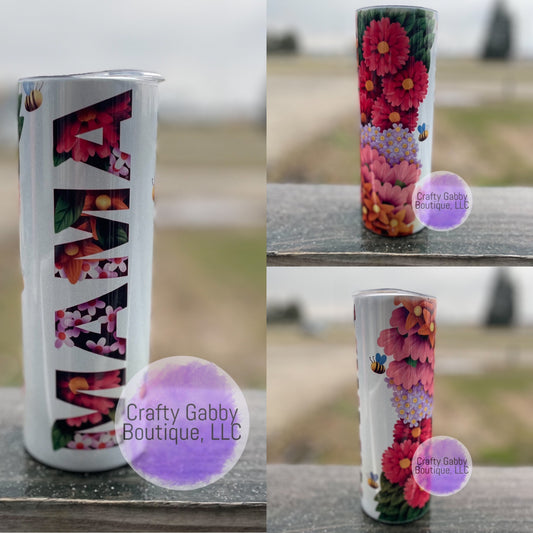 RTS Floral Mama, Holographic 20oz Skinny Tumbler